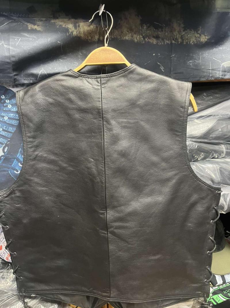 Мото елек с метални копчета, изработен от волска кожа , следователно малко по-здрава и по-твърда .